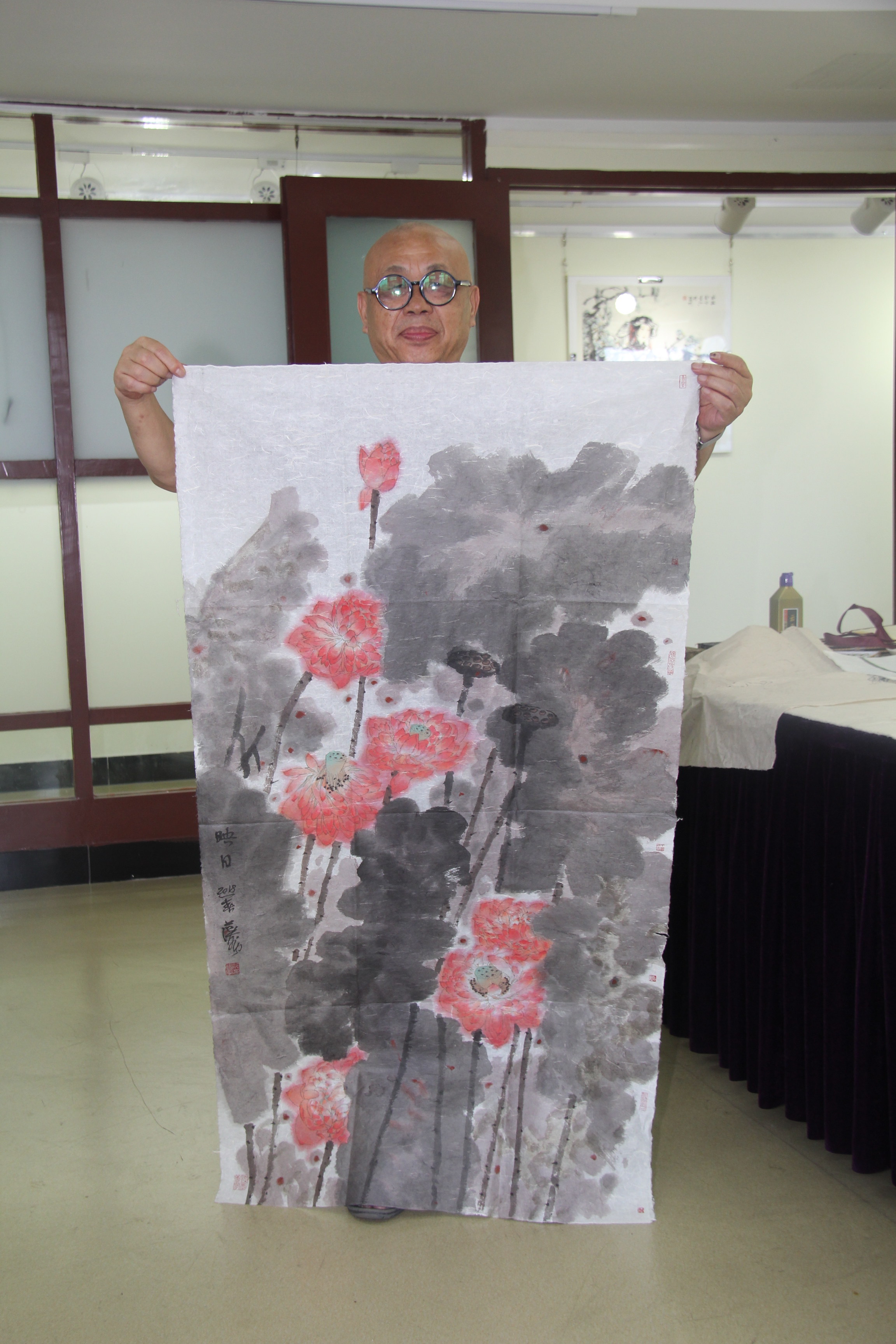 艺术品与作者合影图